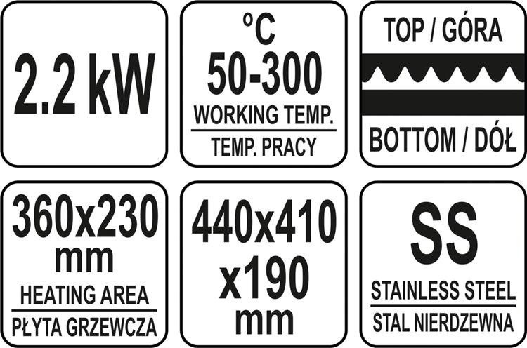 Grill kontaktowy "Panini" o mocy 2,2kW marki YATO YG-04559.