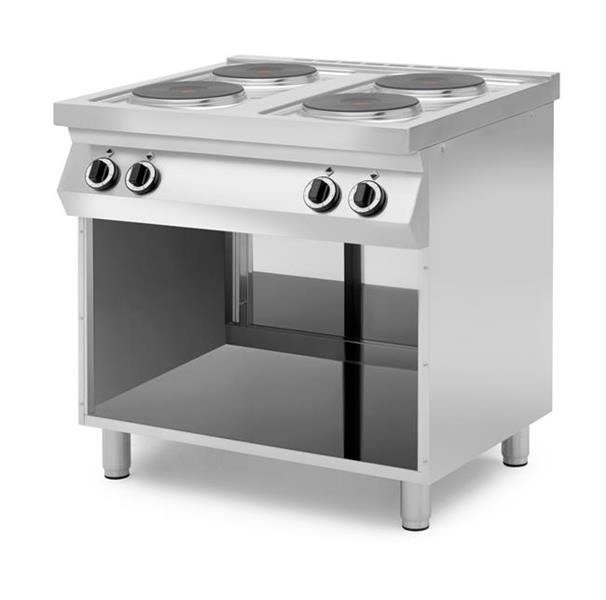 Kuchnie elektryczne 4-płytowe na podstawie z trzech stron zamkniętej lub z piekarnikiem elektrycznym na podstawie otwartej Grafen 227978 MBM