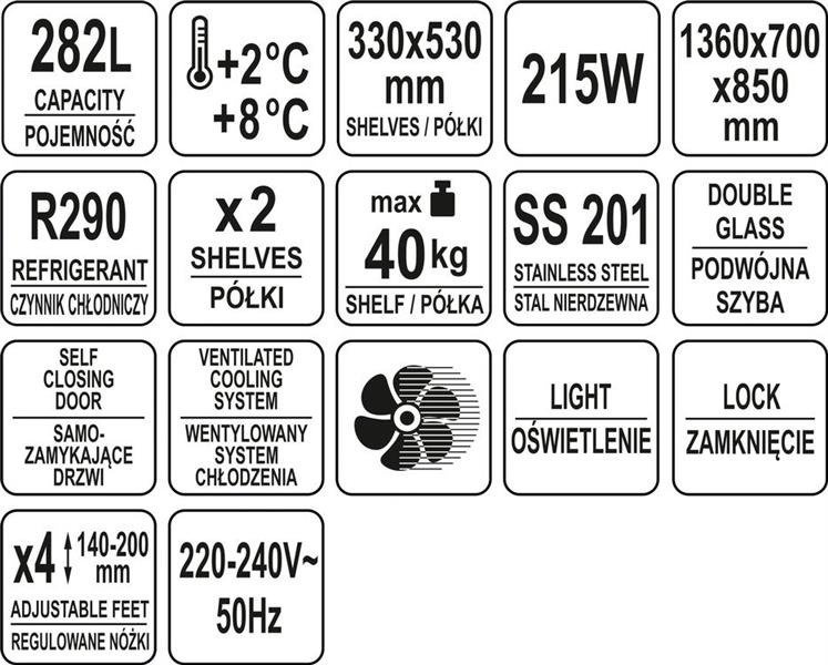 - pojemność: 282l