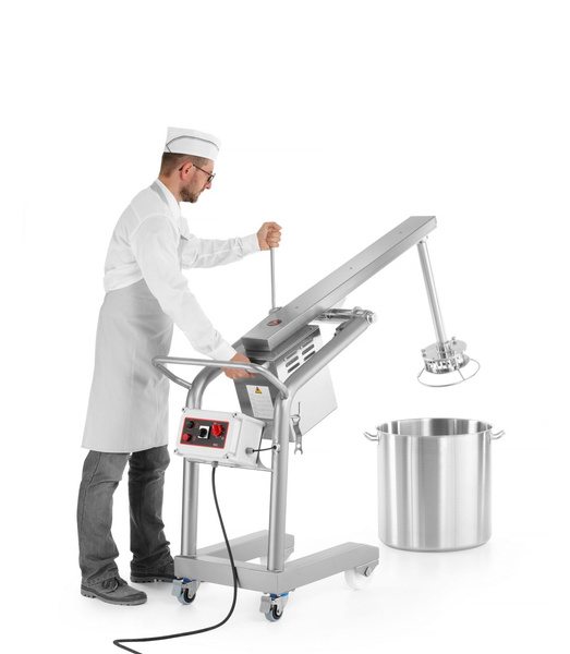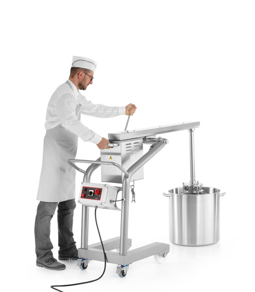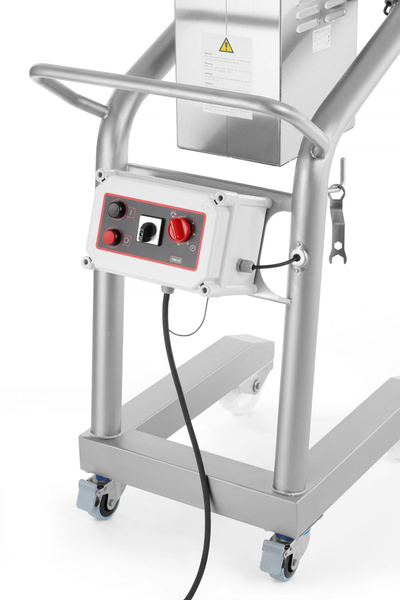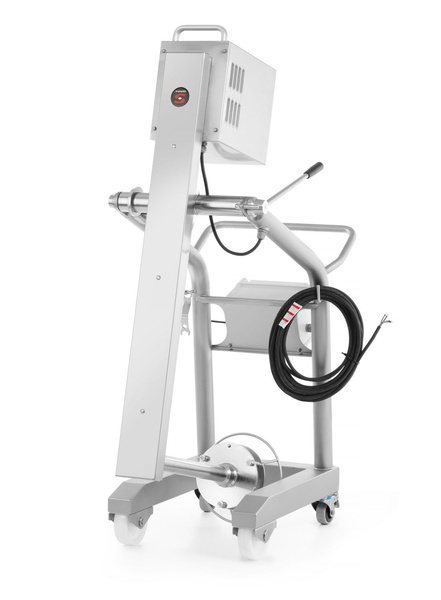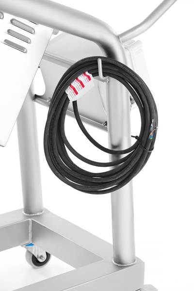 - Przewody elektryczne schowane w stelażu wózka, dzięki czemu obszar roboczy wolny jest od jakichkolwiek przeszkód ograniczających swobodny ruch ramienia miksującego
