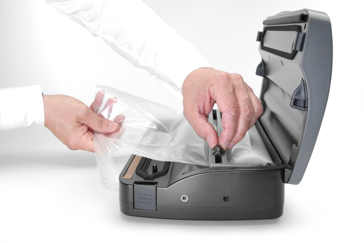 • Wbudowany zasobnik na worki do pakowania w rolce
