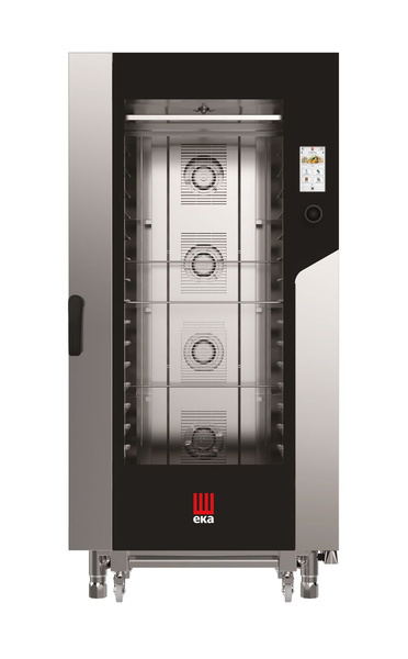 – Najnowocześniejsze z całej serii piece dla gastronomii – Elektroniczny, 7-calowy, kolorowy, dotykowy panel sterowania TFT (Thin Film Transistor) umożliwia bardzo precyzyjne ustawienie żądanych parametrów gotowania. Menu sterowania zapisywane jest w 42 językach, m.in. w polskim – Piece MILLENIAL BLACK MASK posiadają trzy opatentowane rozwiązania: – Airflowlogic™ – to opatentowane i innowacyjne rozwiązanie polegające na całkowitym przeprojektowaniu deflektora (osłony wentylatora). Efektem tego zabiegu jest poprawa cyrkulacji przepływu powietrza Humilogic™ – nowy opatentowany system nawilżania polegający na podawaniu wody bezpośrednio z wentylatora. Zapewnia on wysoki poziom wilgoci i znacznie mniejsze zużycie wody Drylogic™ – system suszenia komory pieca Drylogic™. Dzięki stałej kontroli zaprogramowanych parametrów piece MILLENIAL mają pełna kontrolą nad zarządzaniem poziomu wilgotności z komorze gotowania NAJWAŻNIESZE FUNKCJE: Multi Level Funkcja przydatna przy gotowaniu kilku potraw wymagająch takich samych temperatur i stopnia zaparowania, ale różnego czasu obróbki termicznej. Multi Level pozwala gotować jednocześnie wszystkie potrawy, a piec sam poinformuje, którą musimy wyjąć z komory pieca, gdy będzie już gotowa 1-punktowa sonda Dzięki sondzie piec może stale kontrolować i utrzymywać wskazaną temperaturę wewnątrz potrawy. Nieustannie i samoczynnie koryguje parametry, zapewniając doskonałe efekty pieczenia i gotowania. Automatyczny system myjący Opcja montowana wyłącznie w fabryce. 4 programy mycia: Eco, Normalny, Instensywny, Płukanie. Dostosowane do różnego poziomu zabrudzenia komory. Nowa konstrukcja głowicy myjącej daje aż do 30% oszczędności wody Pre-Heating Rozgrzewanie komory pieca o +30°C więcej niż temperatura zadana w celu przygotowania pieca na przyjęcie potrawy Holding Utrzymywania potrawy w odpowiednio wysokiej temperaturze, bezpośrednio po zakończeniu cyklu gotowania Cool Down Szybkie obniżenie temperatury w komorze, w celu dostosowania do potrzeb kolejnej potrawy, wymagającej niższej temperatury niż panująca w komorze HACCP Możliwość sczytania parametrów pracy pieca w celu kontroli poprawnego przebiegu procesów gotowania Proofer Funkcja zamienia piec w komorę rozrostu Holding Cabinet Piec może pełnić rolę szafy bankietowej – utrzymuje dania w odpowiednio wysokiej temperaturze i nawilżeniu, do momentu wydawania posiłków Możliwość zapisania 500 programów, po 10 kroków każdy Wystarczy wybrać jeden ze 500 programów i wcisnąć START. Piec sam rozpocznie pracę, precyzyjnie utrzymując wcześniej zapisane parametry takie jak temperatura w komorze, temperatura wnętrza potrawy, czas gotowania, stopień wilgotności w każdym kroku całego cyklu. Parametry te można modyfikować, zapisywać i usuwać z pamięci Trzy prędkości wentylatorów Trzystopniowa regulacja prędkości wentylatora zapewnia dostosowanie siły nawiewu do potrzeb gotowania oraz jednorodną temperaturę w całej komorze Gotowanie z użyciem sondy Dzięki sondzie piec może stale kontrolować i utrzymywać wskazaną temperaturę wewnątrz potrawy. Nieustannie i samoczynnie koryguje parametry, zapewniając doskonałe efekty pieczenia i gotowania Gotowanie z wykorzystaniem funkcji Delta T Jest to udoskonalona metoda gotowania z sondą. Szczególnie przydatna przy pieczeniu większych porcji mięsa, takich jak np. szynka. System samoczynnie utrzymuje niewielką różnicę pomiędzy temperaturą w komorze, a środkiem potrawy. Dzięki temu potrawa jest równomiernie ugotowana Port USB Rozwiązanie szczególnie zalecane dla kuchni sieciowych. Wystarczy zaprogramować tylko jeden piec. Do pozostałych można wgrać program za pośrednictwem portu USB POZOSTAŁE CECHY PIECÓW MILLENIAL TOUCH SCREEN: – Regulacja temperatury w zakresie 30-270°C – Opóźnienie automatycznego załączenia się pieca aż do 24 godzin – przydatne w celu przygotowania pieca, lub dania przed przyjściem personelu do pracy – Możliwość zapisania dnia i aktualnej godziny – Alarm wywołany okapem kondensacyjnym (działa tylko w piecu z podłączonym okapem) – Para wytwarzana poprzez bezpośredni natrysk wody na grzałki, z 10-cio stopniowa regulacją stopnia zaparowania – Podwójnie przeszklone drzwi do komory oraz oświetlenie LED – Bezpieczne drzwi – blokada otwarcia przy 60°, 90 °, 120° oraz 180° zapobiega oparzeniom obsługi poprzez niekontrolowany ruch drzwi po ich otwarciu – Zewnętrzna szyba pieca chłodzona grawitacyjnie – Drzwi z zawiasem po prawej – Łatwe otwieranie wewnętrznej szyby drzwi – Uszczelka drzwi wykonana z grubego i odpornego na wysokie temperatury silikony, montowana w obudowie pieca, łatwa do samodzielnej wymiany – Izolowana obudowa pieca nie tylko wpływa na oszczędność energii elektrycznej, ale i zwiększa bezpieczeństwo personelu kuchni – Rynienka pod drzwiami zapobiega kapaniu skondensowanej pary, szczególnie po gotowaniu w cyklu mieszanym i na parze – Komora pieca wykonana z wysokiej klasy stali nierdzewnej AISI 304 – Tłoczona komora pieca z zaokrąglonymi narożnikami ułatwia czyszczenie pieca – Obudowa w całości ze stali nierdzewnej – Współczynnik szczelności: IPX 5 – Regulowane nóżki zapewniają idealne wypoziomowanie pieca – Wymagane podłączenie do prądu, wody uzdatnionej, kanalizacji