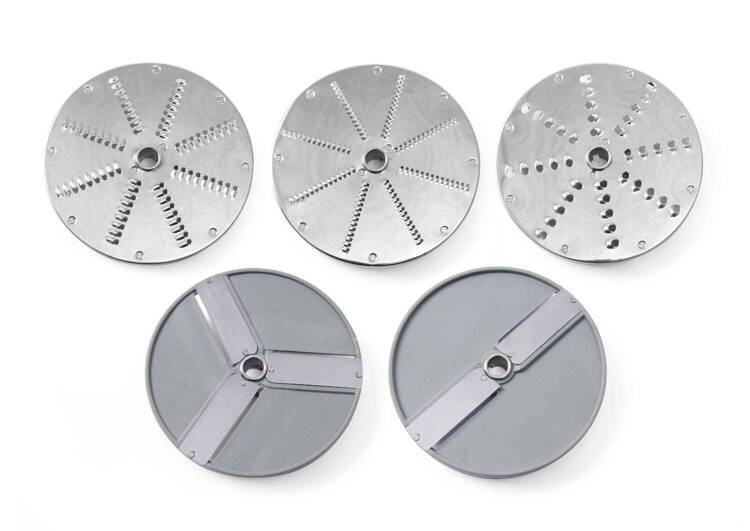 - Zawiera 5 tarcz dających różne efekty krojenia: plastry 2 i 4 mm oraz wiórki 3,5 i 7 mm