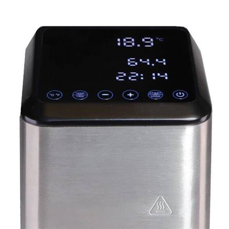 - Zabezpieczenie przed niskim poziomem wody, urządzenie wyłącza sous vide w razie przypadkowego włączenia bez wody
