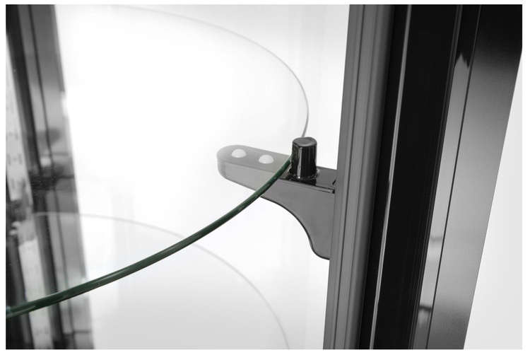 Obudowa ze stali nierdzewnej i hartowane podwójne szyby zapewniają trwałość i doskonałą izolację. Witryna oferuje chłodzenie dynamiczne (wymuszone) z automatycznym rozmrażaniem, utrzymując temperaturę w zakresie od 0°C do 6°C. Cztery regulowane szklane półki pozwalają na elastyczne zagospodarowanie przestrzeni, a samozamykające się drzwi minimalizują straty zimna.