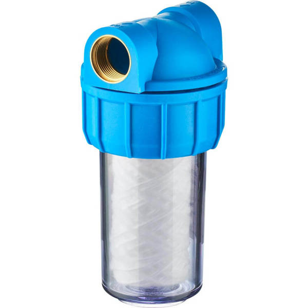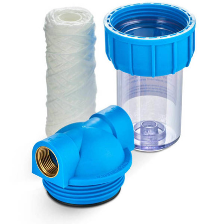 filtr zgrubny nanorurkowy do montażu na przewodach wodnych wydłuża żywotność żywicy znajdującej się we wszelkich zmiękczaczach i uzdatniaczach wody chroni urządzenia przed zanieczyszczeniami filtracja o wielkości 50 µm przeźroczysta obudowa ułatwia kontrolę stopnia zabrudzenia przyłącze 3/4"
