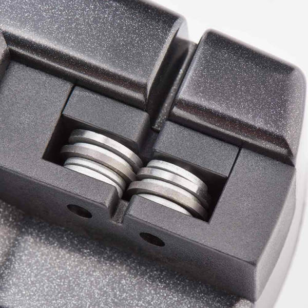 zalecana do użytkowania z nożami o prostej krawędzi koła ostrzące 360 stopni wydłużają okres eksploatacji ostrzałki ostrzy jednocześnie obie strony noża polecana dla osób lewo i praworęcznych posiada przyssawkę i antypoślizgowe nóżki, które utrzymują ostrzałkę w bezpiecznym miejscu system ostrzenia 360 stopni utrzymuje ostrze w stałej pozycji eliminując drgania precyzja kół ostrzących wynosi ~ 0.01 mm ostrza wykonane ze stali wolframowej