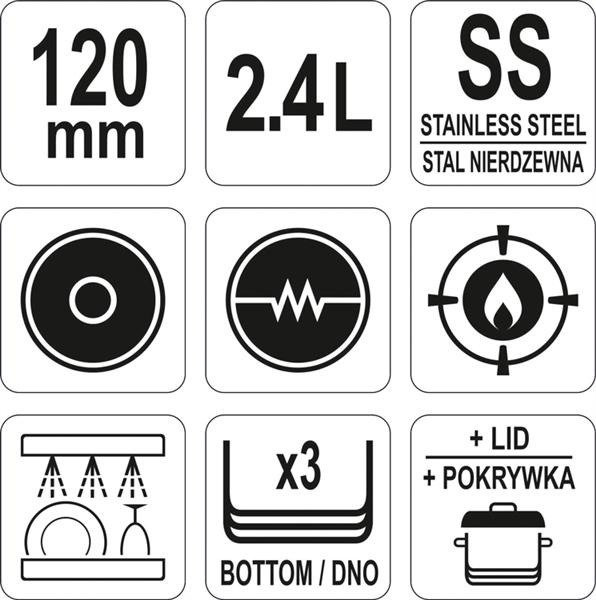 Wkładka ferromagnetyczna w dnie pozwala na stosowanie garnków YATO na każdym rodzaju kuchenek, takich jak: