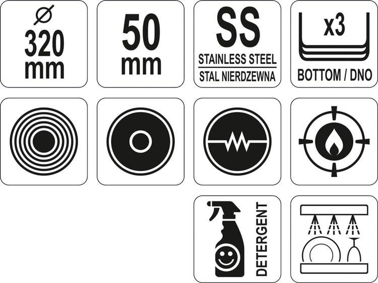 Specjalna wkładka ferromagnetyczna w dnie pozwala na stosowanie patelni YATO na każdym rodzaju kuchenek, takich jak: