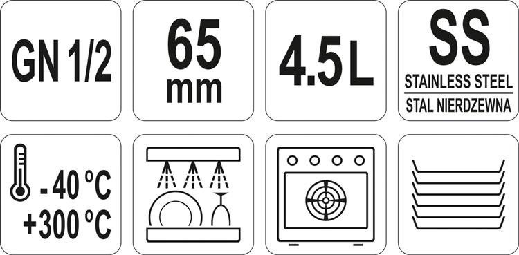 POJEMNIK GASTRONOMICZNY ZE STALI NIERDZEWNEJ GN 1/2 65MM 4,5L | YG-00262