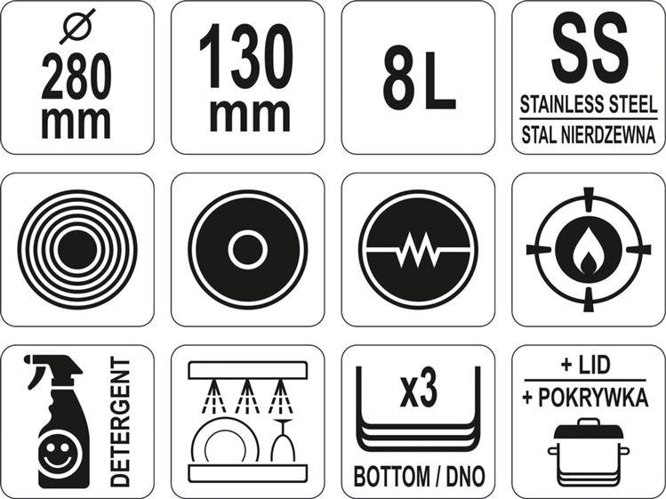 RONDEL Z POKRYWKĄ ZE STALI NIERDZEWNEJ 28x13CM 8L | YG-00063