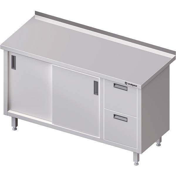 Stół przyścienny z blokiem dwóch szuflad (P),drzwi suwane 1800x700x850 mm STALGAST MEBLE 980357180