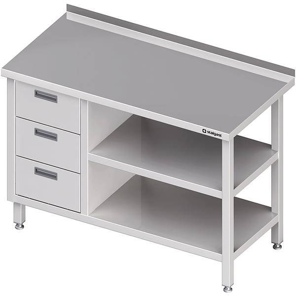 - STALGAST MEBLE Stół przyścienny z blokiem trzech szuflad (L),i 2-ma półkami 1900x600x850 mm