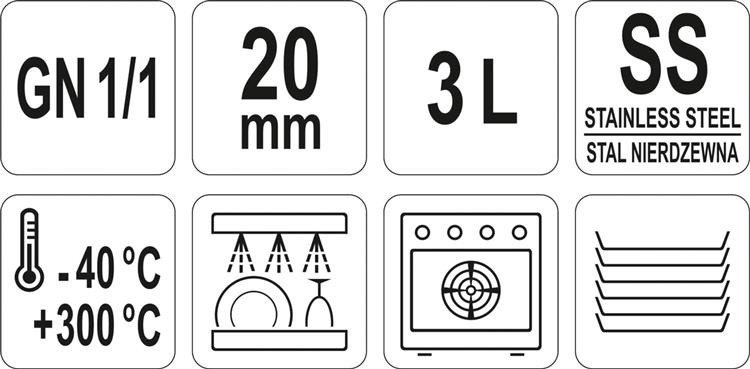 POJEMNIK GASTRONOMICZNY ZE STALI NIERDZEWNEJ GN 1/1 20 | YG-00250