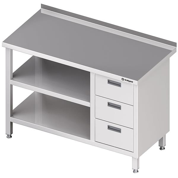 - STALGAST MEBLE Stół przyścienny z blokiem trzech szuflad (P),i 2-ma półkami 900x700x850 mm