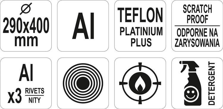 - Patelnia marki YATO pokryta jest oryginalnym trójwarstwowym systemem powłok PTFE, który odznacza się najlepszymi dostępnymi na rynku parametrami.
