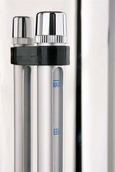 Na zewnątrz pojemnika znajduje się wskaźnik poziomu wody ze skalą wyrażoną w litrach. Po obu stronach są wygodne, nienagrzewające się uchwyty do przenoszenia. Ich konstrukcja stanowi jednocześnie system TWIST-LOCK dzięki czemu możliwe jest szczelne zamknięcie pokrywki.