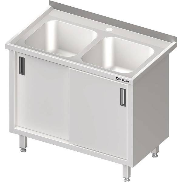 Stół ze zlewem 2-kom.,drzwi suwane 1000x600x850 mm STALGAST MEBLE 980896100