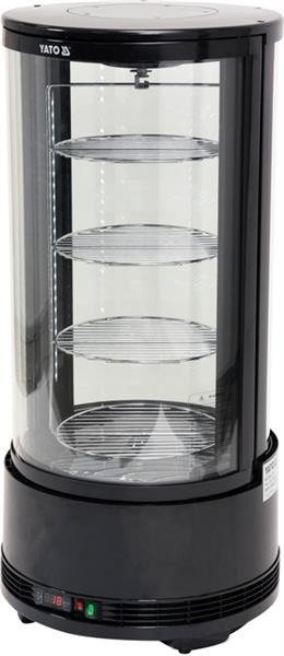 Witryna chłodnicza okrągła YATO nastawna o pojemności 73L w kolorze czarnym.Witryna chłodnicza marki YATO przeznaczona jest do ekspozycji ciast, tortów, koktajli czy różnego rodzaju napojów. Nowoczesne wzornictwo połączone z wysoką jakością surowców powoduję, że witryna chłodnicza YATO doskonale prezentuje się na froncie we wszelkiego typu cukierniach, kawiarniach, restauracjach czy punktach handlowych.