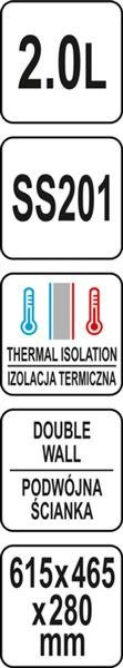 Termos stołowy z przyciskiem o pojemności 2,0LTermos stołowy YATO o pojemności 2,0L jest starannie wykonany z najwyższej jakości stali nierdzewnej. Satynowe wykończenie nadaje mu eleganckiego wyglądu, dzięki czemu doskonale prezentuje się w salach konferencyjnych, restauracjach czy hotelach.