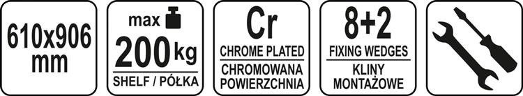 Półka regału o wymiarze 610x906mm ze stali chromowanej.