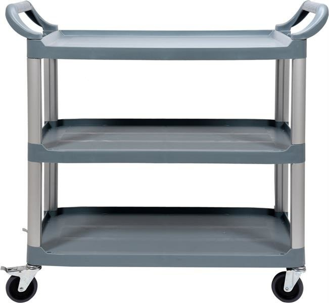 Trzy duże półki o wymiarach 750x490 mm zakończone są z trzech stron specjalnym rantem o wysokości 20mm, który zabezpiecza transportowane produkty przez ześlizgnięciem podczas przewożenia. Natomiast brak rantu frontowego ułatwia załadunek.