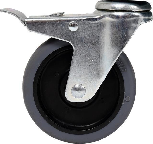 Wózek wyposażony jest w 4 kółka z łożyskami, wykonane z wysokiej jakości szarego TPR. Zastosowanie twardego, a jednocześnie elastycznego materiału zapewnia bardzo cichą pracę. Kółka nie rysują posadzki, nie pozostawiają na niej śladów i są skrętne w zakresie 360°. Umożliwia to manewrowanie w trudno dostępnych pomieszczeniach i wąskich korytarzach. Dwa kółka wyposażono dodatkowo w hamulce.