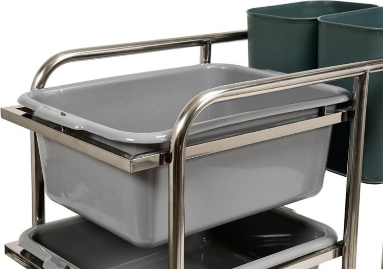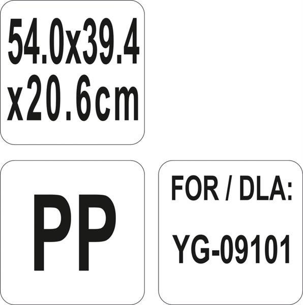 Po obu stronach pojemnik posiada uchwyty umożliwiające przenoszenie. W jednym z uchwytów jest specjalny otwór umożliwiający zamontowanie go na półce wózka serwisowego YG-09101 i zapobiega jego wypadaniu.