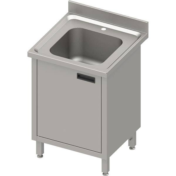 Stół ze zlewem 1-kom.(L),drzwi skrzydłowe 700x600x850 mm, blat tłoczony,rant puszkowy 100x15x10 STALGAST MEBLE 984506070