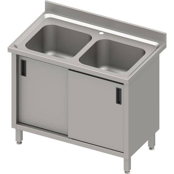 Stół ze zlewem 2-kom.,drzwi suwane 1000x600x850 mm, blat tłoczony,rant puszkowy 100x15x10 STALGAST MEBLE 984646100