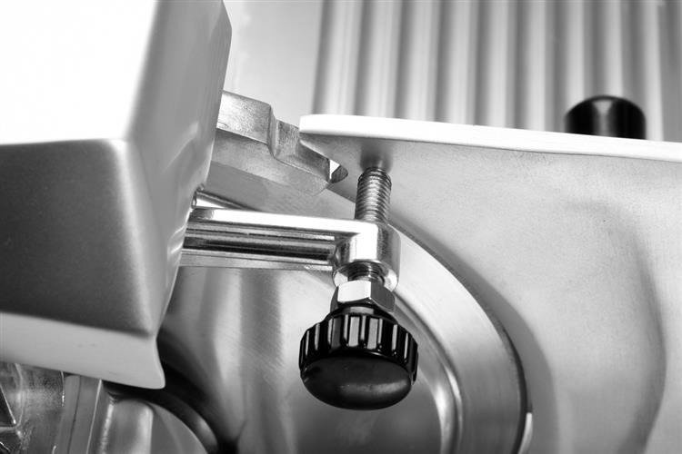 Tarcza tnąca o średnicy 250mm umożliwia krojenie produktów o średnicy sięgającej do 180mm. Dzięki płynnej regulacji grubości krojenia możliwe jest cięcie plastrów o grubości od 0,2 do 12mm.