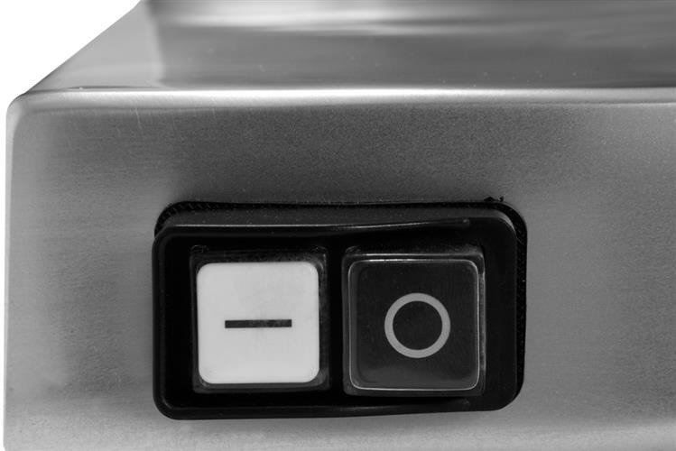 Szczególną uwagę przyłożono także do kwestii bezpieczeństwa. Bryzgoszczelny włącznik zabezpiecza przed porażenim prądem podczas pracy oraz czyszczenia urządzenia. Dodatkowo zastosowana jest osłona zabezpieczająca tarczę tnącą, minimalizując ryzyko skaleczenia się. Poza tym wózek posiada specjalną przeźroczystą osłonę chroniącą przed przypadkowym włożeniem ręki w strefę cięcia.