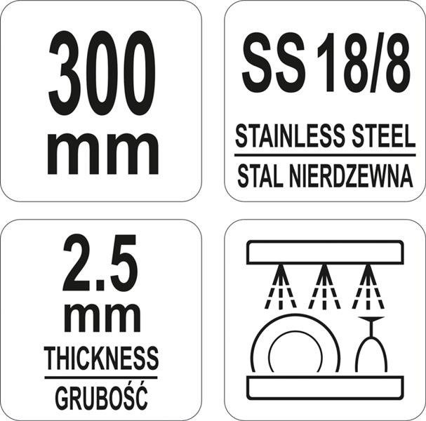 Wykonana z wysokiej jakości stali nierdzewnej 18/8 z profilu o grugości 2,5mm. Posiada wygodny metalowy uchwyt. Jej trwała i wytrzymała konstrukcja gwarantuje długą żywotność.