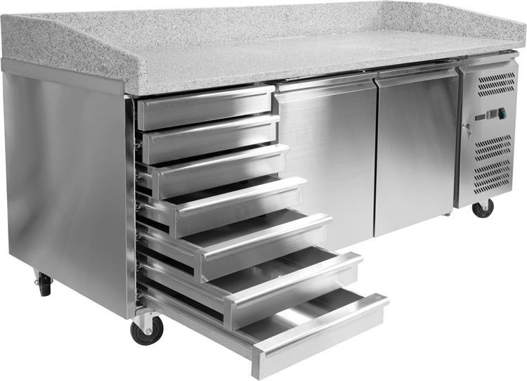 - STÓŁ CHŁODNICZY DO PIZZY 580L 2-DRZWIOWY 7 SZUFLAD GRANITOWY BLAT