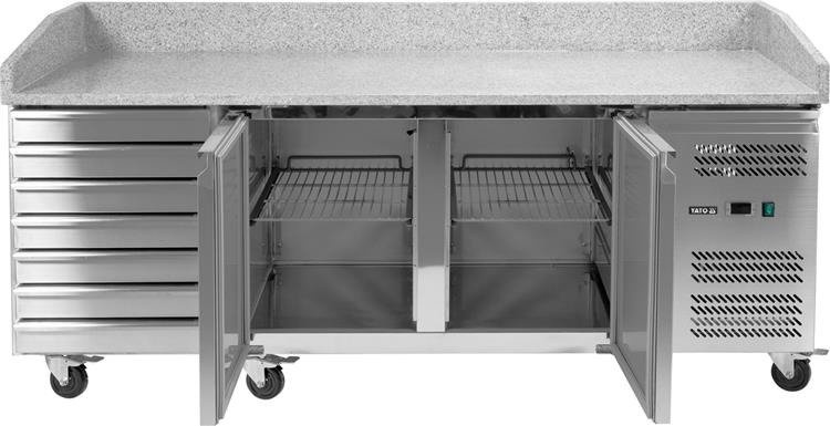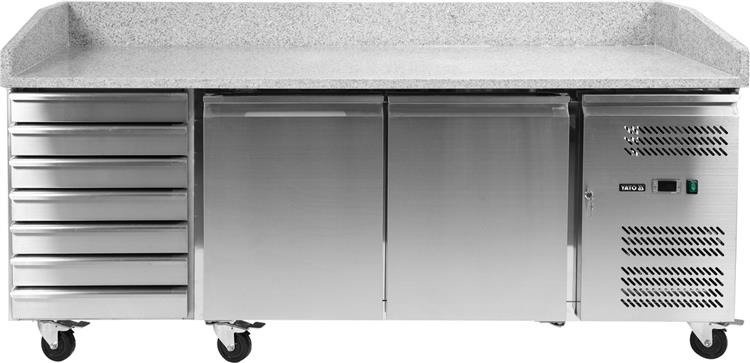 Stół chłodniczy 2-drzwiowy z 7 szufladami marki YATO YG-05275 z blatem roboczym z granitu.