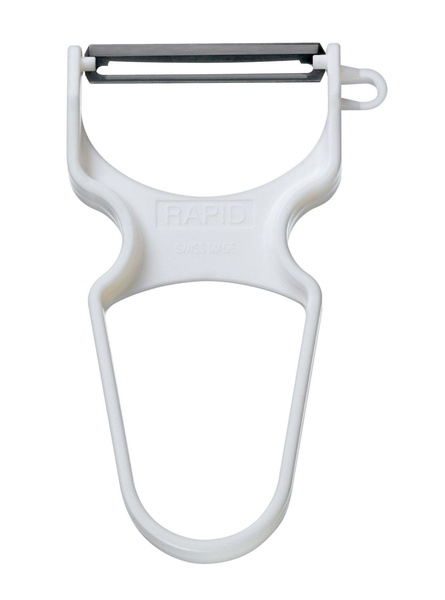 Obieraczka Rapid firmy Victorinox posiada uchwyt z tworzywa sztucznego i metalowe ostrze. Pozwala szybko i sprawnie obrać warzywa i niektóre owoce. Obrotowe ostrze dostosowuje się do powierzchni cięcia.