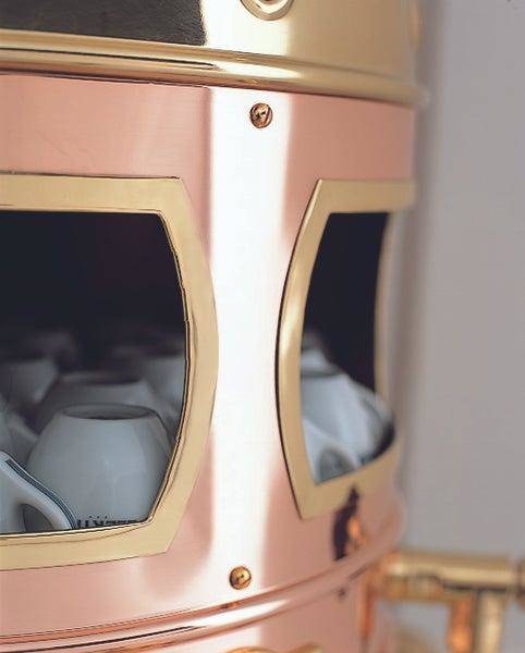 - Obudowa z mosiądzu, miedzi lub chromu sprawia, że ekspres wygląda niezwykle elegancko