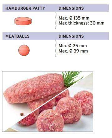 - Wysoka wydajność produkcyjna 6000 klopsików/h oraz 3000 hamburgerów/h