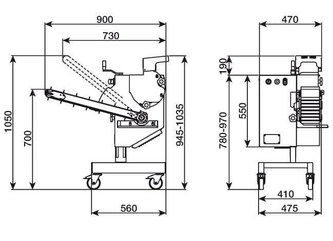 - Taśma transportuje uformowane klopsiki do lady oddawczej lub innego sprzętu do kolejnego cyklu obróbki