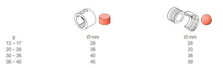 - CYL-28 - zestaw Delrin® (cylinder + „półksiężyc”) dla kształtu kulistego Ø 28 mm (wymagany cylinder -porcje Ø 28 na maszynie do hamburgerów C/E 653)
