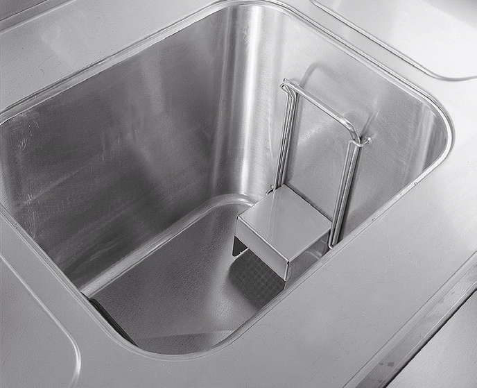 - Wyprofilowana, pochylona konstrukcja komory usprawnia proces opróżniania zmywarki z wody