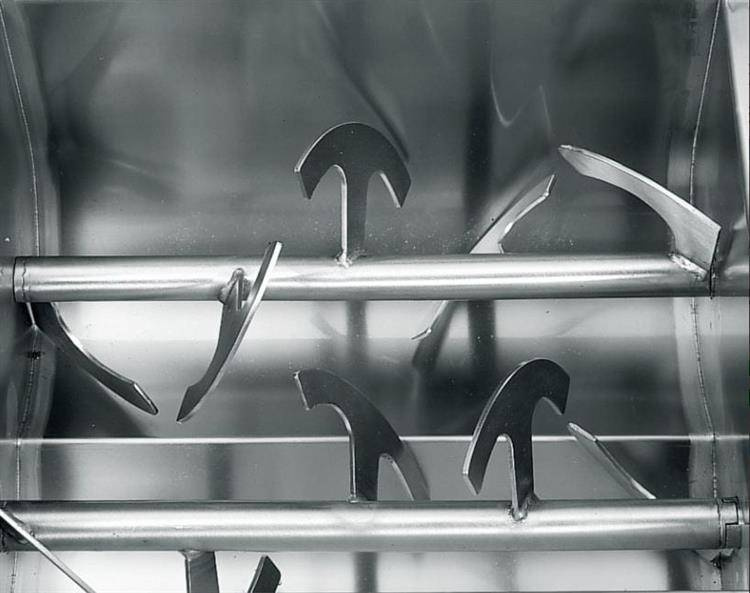 - System dwóch wałów mieszających z łopatkami wykonanymi ze stali nierdzewnej AISI 304, który idealnie sprawdza się także do mieszania surówek i sałatek