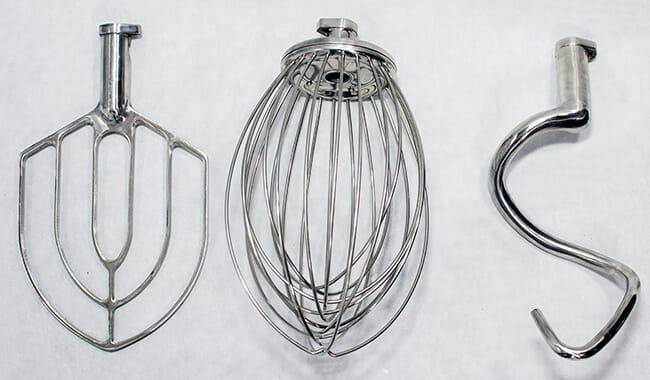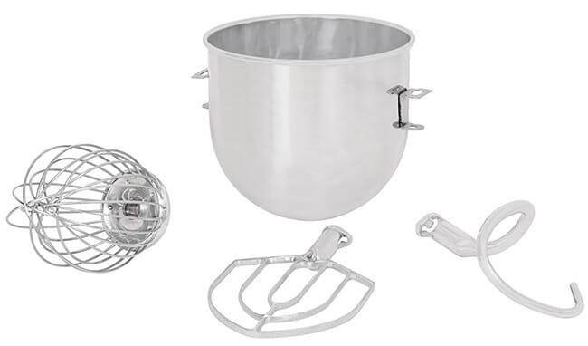 - W zestawie znajdują się: dzieża, hak, płaskie mieszadło, trzepaczka do ubijania piany