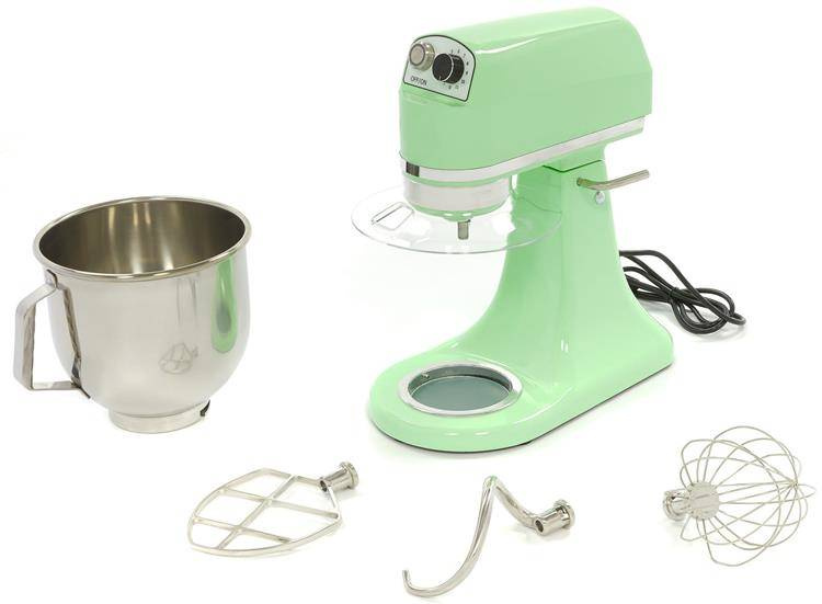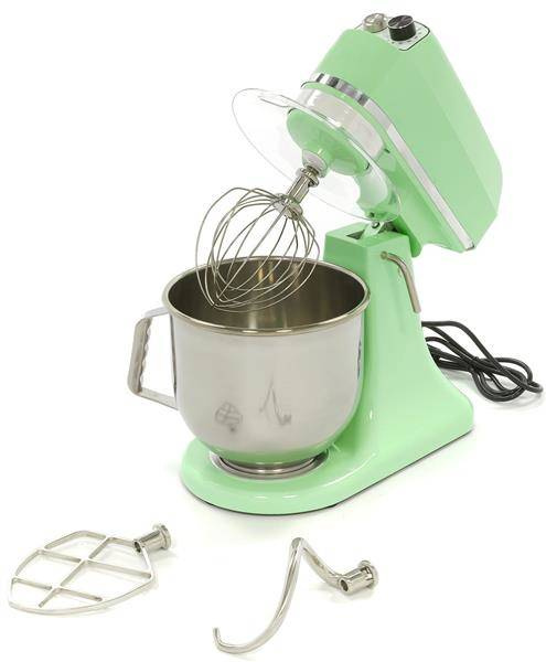• W zestawie: dzieża, płaskie mieszadło, trzepaczka do jajek oraz hak ze stali nierdzewnej