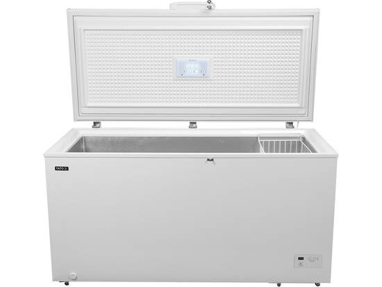 Zamrażarka skrzyniowa dla gastronomii profesjonalnej. Posiada samozamykające drzwi uchylne z uchwytem, wyposażone w zamek.