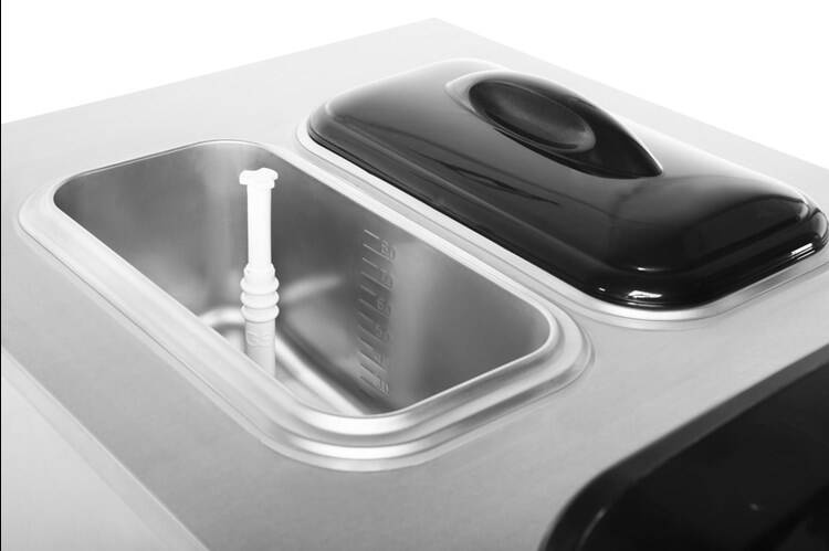 - Obudowa, uchwyty dozujące oraz zbiorniki na mieszankę lodową wykonane są ze stali nierdzewnej