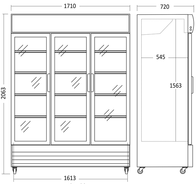 - Wymiary zewnętrzne [mm]: 1710x720x2065