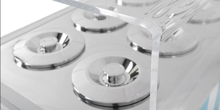 - Wysuwany blat roboczy z otworami pod pojemniki tubowe oraz pokrywkami ze stali nierdzewnej