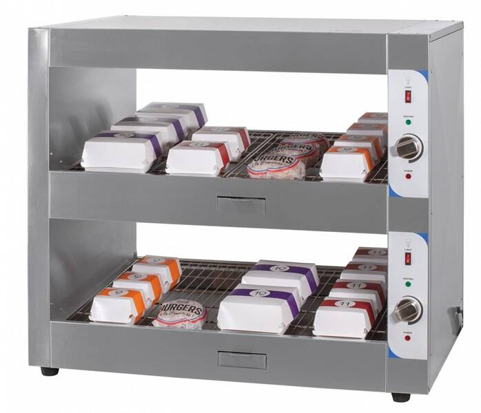 • Podgrzewacz do burgerów | witryna grzewcza | dwie półki | 2 kW | 1000x600x900 mm