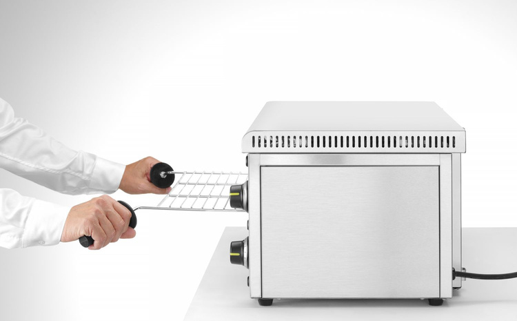 - Opiekacz GN 1/1 firmy HENDI jest idealny do szybkiego podgrzewania i grillowania przekąsek. Wysokość rusztu może być regulowana na 4 poziomach. Opiekacz posiada w zestawie demontowaną tackę na okruchy dla łatwego czyszczenia oraz ruszt.